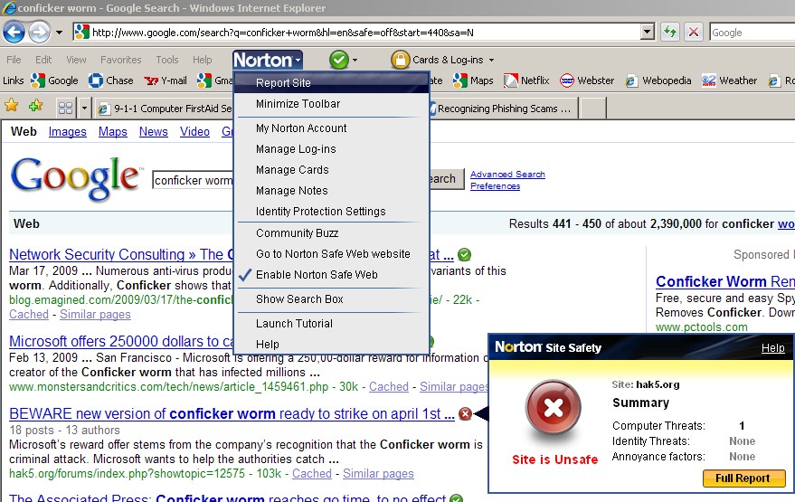 Without Norton's Safe Surfing
