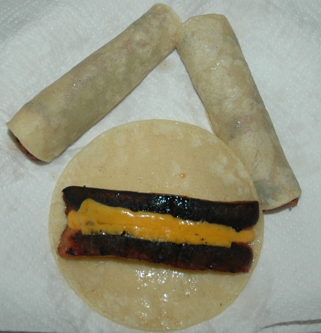 Combine meat and beans. Keep warm. Heat tortillas, add